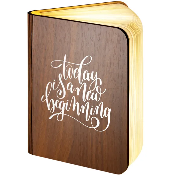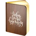 Our wooden folding magnetic glowing LED book light is an ideal gift which makes a stunning gift for any recipient.It opens like a book, and the special hinge design allows you to change its shape according to your needs. Whether you are in the living room or your child is reading a bedtime story, book lights provide you with an elegant and fun lighting solution.Additionally, you can make this a unique gift with our great range of designs for the front and an additional personalised message on the back cover of the book. The outer cover is made from wood with a durable, waterproof, Dupont paper 'pages' expanding inner cover which diffuses and enhances the warm light from the multiple LED bulbs the instant you open the book.This is a really warm, comforting, remarkable gift which will literally make the recipients face light up.- Folding LED Book Lamp, can fold up to 360 degrees to create a mood / reading light- Magnetic covers for folding back onto itself or sticking to steel objects- Powered by internal battery. Re-chargeable with included USB cable from USB port / charger- Operating time 4-6 hours / Charging time 3-4 hours. Durable Waterproof Dupont Paper 'pages'- Make this a truly special gift by adding your own personal message on the book back