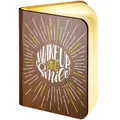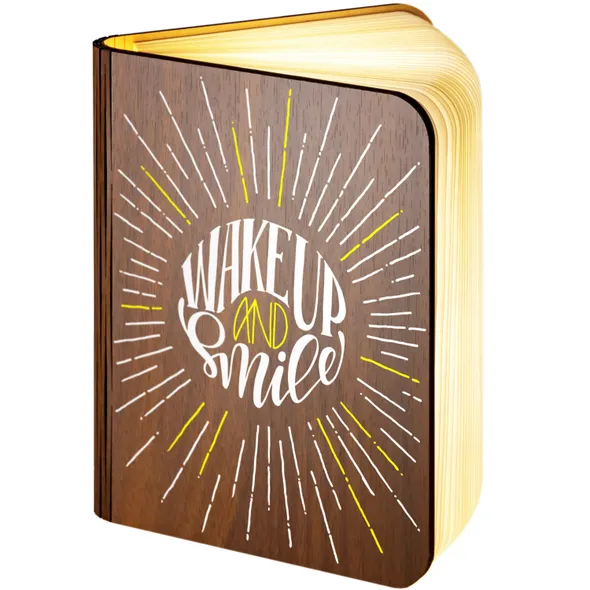 Our wooden folding magnetic glowing LED book light is an ideal gift which makes a stunning gift for any recipient.It opens like a book, and the special hinge design allows you to change its shape according to your needs. Whether you are in the living room or your child is reading a bedtime story, book lights provide you with an elegant and fun lighting solution.Additionally, you can make this a unique gift with our great range of designs for the front and an additional personalised message on the back cover of the book. The outer cover is made from wood with a durable, waterproof, Dupont paper 'pages' expanding inner cover which diffuses and enhances the warm light from the multiple LED bulbs the instant you open the book.This is a really warm, comforting, remarkable gift which will literally make the recipients face light up.- Folding LED Book Lamp, can fold up to 360 degrees to create a mood / reading light- Magnetic covers for folding back onto itself or sticking to steel objects- Powered by internal battery. Re-chargeable with included USB cable from USB port / charger- Operating time 4-6 hours / Charging time 3-4 hours. Durable Waterproof Dupont Paper 'pages'- Make this a truly special gift by adding your own personal message on the book back