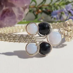 Blue Lace Agate & Blue Goldstone Silver Plated Wire Cuff