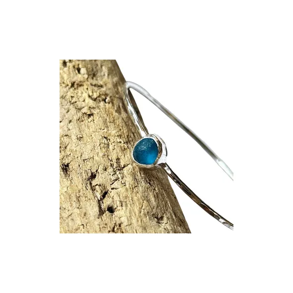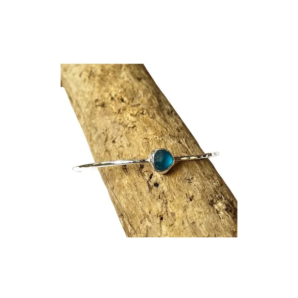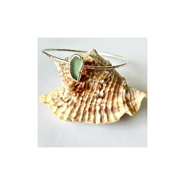 Discover the beauty of my handmade, eco-friendly recycled sterling silver bangle showcasing a captivating piece of seafood sea glass. Each bangle made has a hammered finish, adding a touch of artistry design.Crafted with love and care, the bangles are made to order. Each piece made is one of a kind being a unique piece.