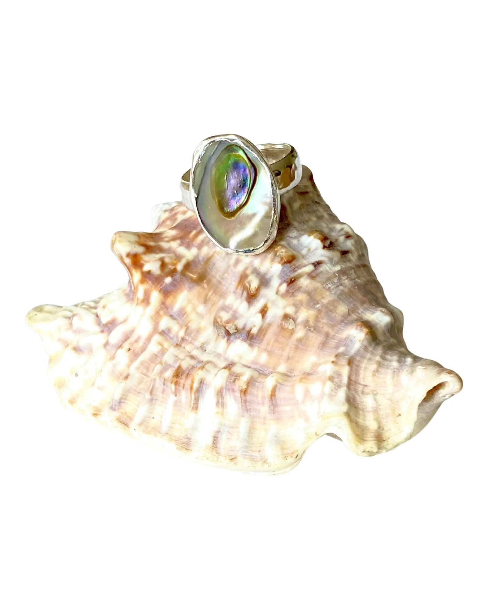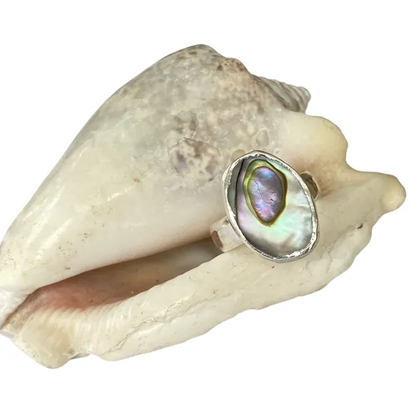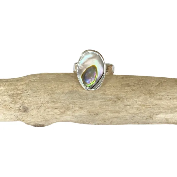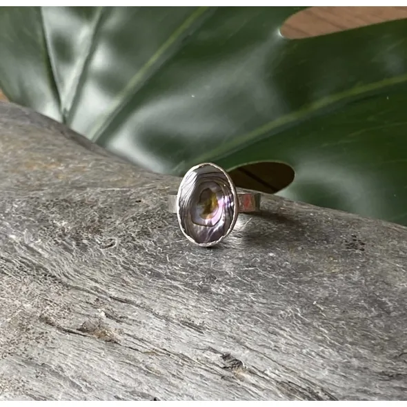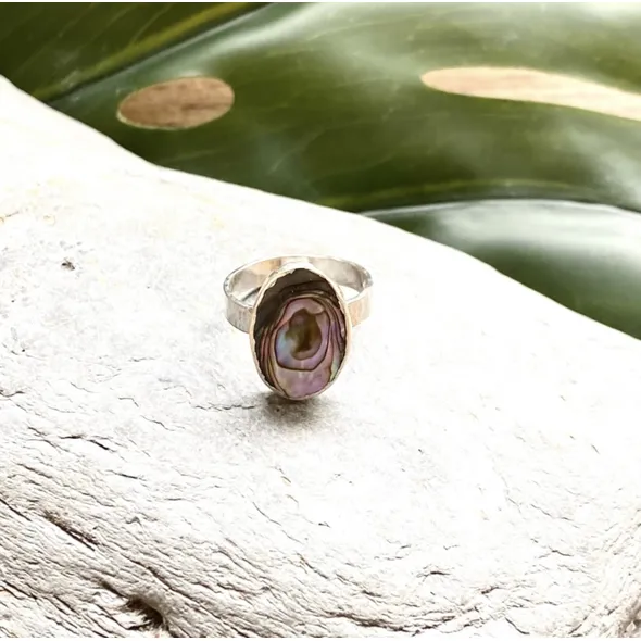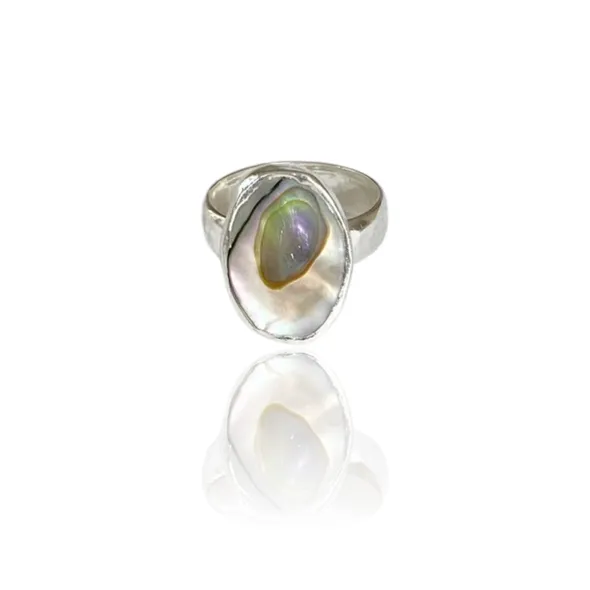 Handcrafted Oval shape Abalone Shell. The shell originates from Australia and is of high quality. 925 Sterling Silver Ring