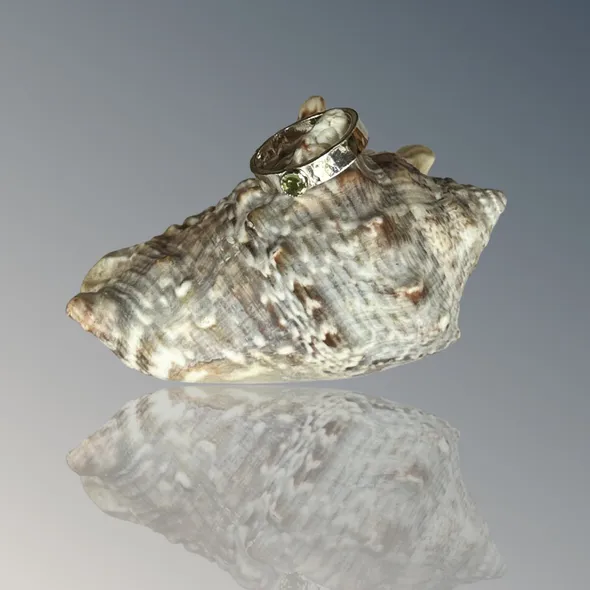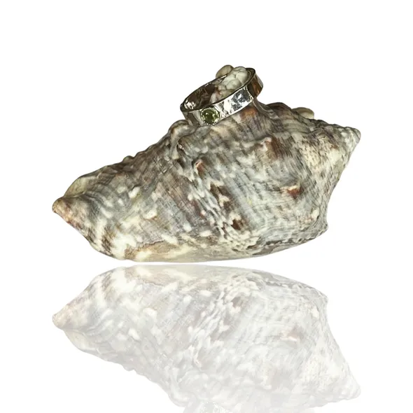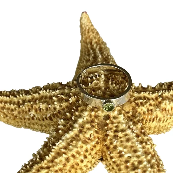 A 4mm wide band with a hammered finish gives this ring a unique and textured appearance. The addition of a 4mm peridot stone adds a touch of color and sparkle to the ring. Peridot is a beautiful gemstone that is often associated with positivity and creativity. It is also the birthstone for the month of August. Peridot has a vibrant green color that can range from pale green to a deep, rich green. It is a relatively durable stone and has a hardness of 6.5 to 7 on the Mohs scale. A handmade artisan solid sterling silver ring with a peridot stone would make a wonderful gift for someone special or a lovely addition to your own jewelry collection. The craftsmanship and attention to detail that goes into creating a handmade piece make it truly unique and one-of-a-kind. I can also customise with your preferred stone.