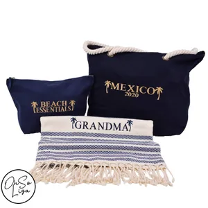 Personalised 3 Piece Beach Bag, Towel and Essentials Set – Honeymoon Gift – Beach Wedding - Personalized Beach Towel - Custom Turkish Towel