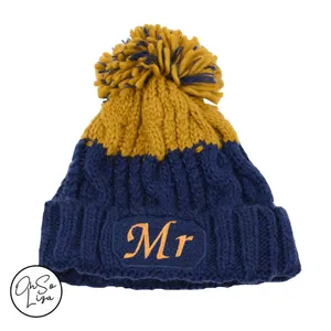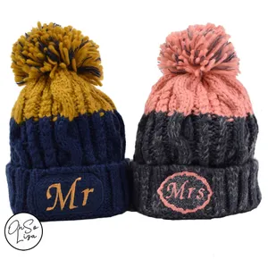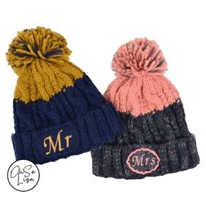 Mr and Mrs Deluxe Pom Pom Hats Set of 2 - Honeymoon Hats - Wifey and Hubs - Husband and Wife Hats - Newlyweds Honeymoon - Winter Wedding