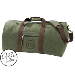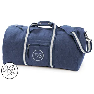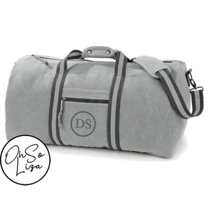 Personalised Vintage Grey Canvas Duffle Bag