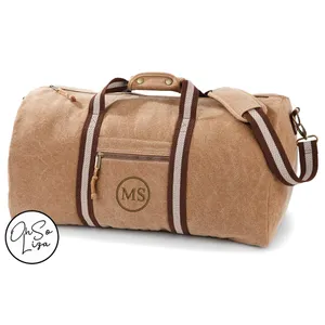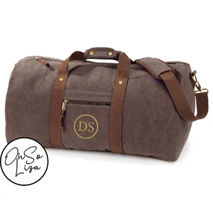 Personalised Vintage Brown Canvas Duffle Bag