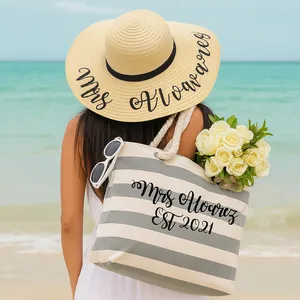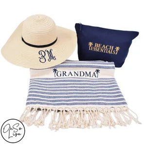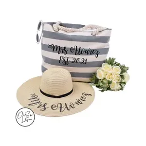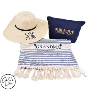 Personalised 3 Piece Beach Bag Towel and Floppy Hat Set – Honeymoon Gift – Beach Wedding - Personalized Beach Towel - Custom Turkish Towel