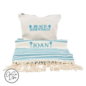 Personalised Beach Towel and Cosmetic Bag – Honeymoon Gift – Beach Wedding - Personalized Beach Towel - Custom Turkish Towel