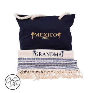 Embroidered Beach Bag and Towel Personalised Set – Birthday Gift - Honeymoon Gift – Beach Wedding - Personalized Beach Towel - Turkish Towel