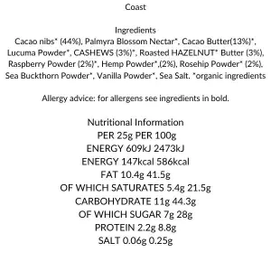 Raw Cacao Bar with Raspberry, Rosehip, Sea Buckthorn & Sea Salt - Coast Bar