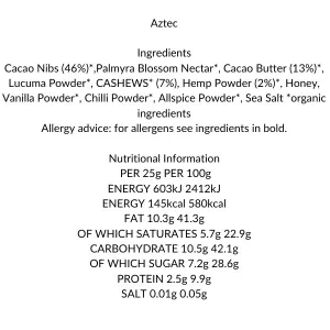 Raw Cacao Bar with Chilli, Allspice, Vanilla and Honey - Aztec Bar
