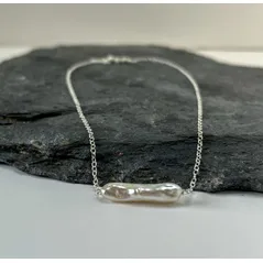 Handcrafted Sterling Silver Biwa Stick Pearl Necklace