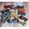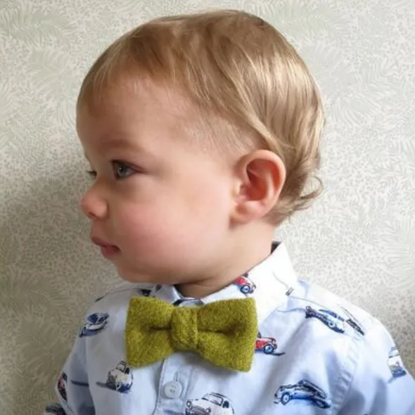Dress even the tiniest of Tweed fans in style. I handcraft each bow tie from the finest Scottish Tweed, handwoven using traditional techniques in the Hebrides. A selection of colours pictured here - other colours are available please do message me if you have a particular colour in mind. Pre-tied and ready to wear, the crisp bow has an adjustable strap for the perfect fit that grows with your child. I carefully pick high quality cotton for the straps to coordinate perfectly and compliment the Tweed bow. My bow ties are versatile and look great with jeans and a casual top just as much as when worn with a smart shirt or suit. I am able to colour match tweed to coordinate with wedding colours. A great prop for newborn photoshoots or month growth pictures. Matching daddy and me sets are also available. Bow measures approx. 10cm wide and 5cm tall Strap fits from birth up to 34cm neck. Adjustable with room so the bow tie grows with your child. ~ PLEASE LEAVE CHILDS NECK MEASUREMENT IN THE COMMENT BX AT CHECKOUT ~ Personalisation available for that extra special touch