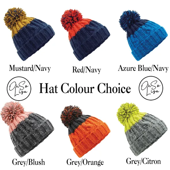 Set of 2 Mr and Mrs Deluxe Winter Pom Pom Hats the Perfect Gift for the Honeymoon couple heading to the Slopes. Keeping them warm in their own unique hats.... Welcome to Oh So Liza and thank you for visiting my shop. These beautiful luxury Pom Pom hats come with luxurious Shearling thermal band for extra warmth. Embroidered with Mr and Mrs they're the perfect gift for that special couple. Keeping them warm in their own unique hats!!!! These Winter Pom Pom Hats are a great option for a Winter Wedding or Winter Honeymoon which makes a wonderful gift for the couple that loves the outdoors. *ABOUT YOUR HATS* Heavyweight multi-yarn cable knit design. Bold two colour design. Luxury pom pom. Luxurious Shearling thermal band for extra warmth HOW TO ORDER Order the Colour Hats you would like for the Mr and Mrs, The embroidery will always come in the colour to match the top of the hat. If you would like a different colour to this please add this in the personalisation box. Other text maybe possible, please message me if you would prefer different embroidery on the hats. Thank you for shopping with me. Liza