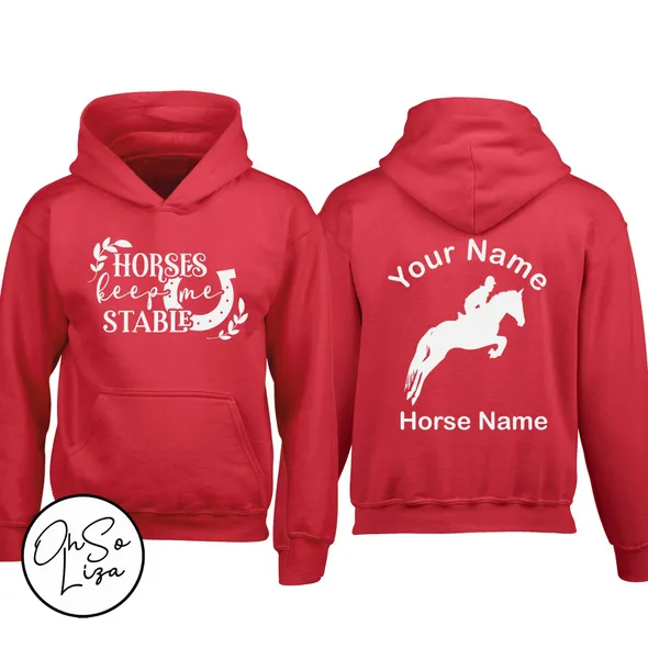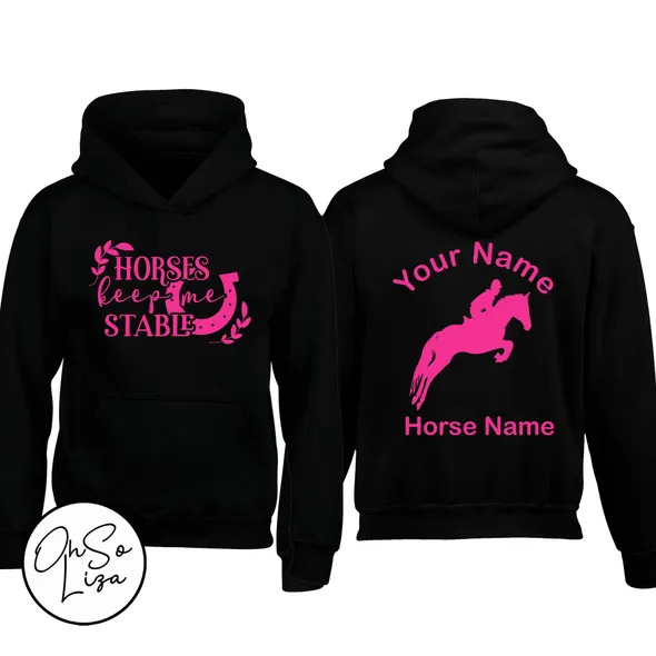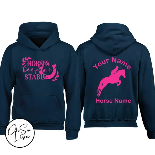 Personalised Horse Riding Hoodie - Horses Keep me Stable - Equestrian Gift - Personalized Hoodie - Pony Club Gift -Pink - Horse Lover Gift