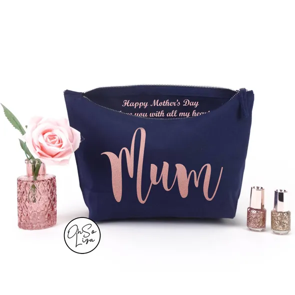 Welcome to Oh So Liza and thank you for visiting my shop. This Make Up bag is a great personalised gift for your Special Mum, with a custom hidden message on the inside. This message can be sending a personal message to give your gift that extra touch. With a short custom message on the inside of the bag with a maximum of 40 characters (including spaces and punctuation) evenly spread over 2 lines. For this option, please select custom message in the drop down menu and leave your custom message in the note to seller section at checkout. Sorry English Text only (no symbols). ***How to order*** 1) Choose the Bag Colour and Size from the Dropdown 2) Choose the Print Colour from the dropdown 3) Leave the Name, Mum, Mom or Mam for Front and your inside Message ( no more then 40 characters) ***About your Bag*** Cotton Canvas Bag available in Black, Navy, Grey, Pink, off white and Natural with a durable metal zip. Dimensions M - 19 x 18 x 9cm, Perfect for your whole Make Up Kit Colours may appear different due to monitors/screens. If you need your items by a certain date or on a tight deadline, then please message us before you purchase to ensure that this is possible as we do not want to disappoint you. Thank you for shopping with me. Liza