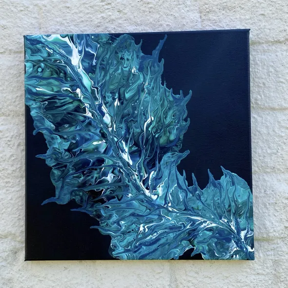 Inspired by the rockpools and see the blue, red and aqua foliage swirling about in the water. Fluid are on canvas sealed with a subtle satin varnish 30x30cm Canvas