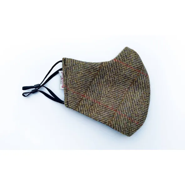 Stay safe in style. Shaped face mask made from Harris Tweed. Each mask features: - A shaped design that fits comfortably on the face. - An aluminium nose wire which helps to reduce fogging when wearing with glasses. - A non-woven inner layer, and a breathable cotton lining. - Adjustable elastic ear loops OR tie straps made from recycled t-shirt yarn. - The official Harris Tweed Orb Authentication label. - Removable/replaceable nose wire WASHING - Machine washable at 40°c on a gentle cycle. - Remove wire before washing or wash in a laundry bag. - Do not tumble dry. SIZE My standard women's size is to fit a face measurement of 5" from the bridge of the nose to just under the chin. I can make the masks to any size for the best fit - please include your face measurement in the comments box at checkout or message me. Thank you