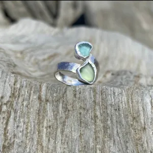 Ocean Sea Glass Silver Ring