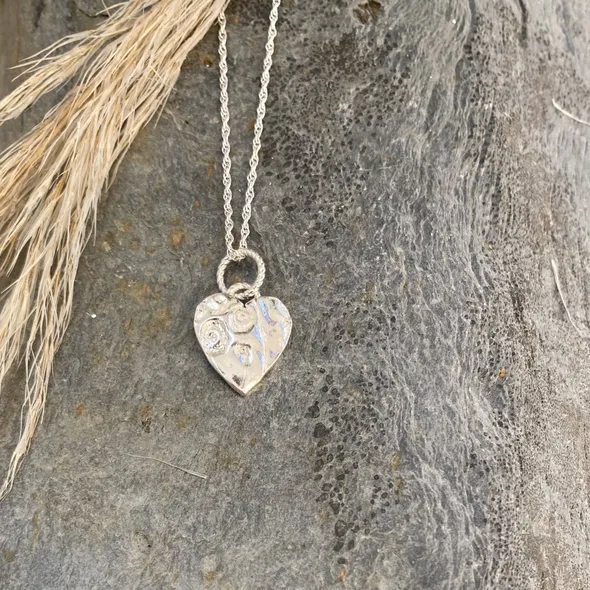 This beautiful Fine Silver heart pendant necklace is handmade by me in my workshop in Woolacombe Devon. Makes a perfect gift for someone special, or a lovely gift to yourself! I created this piece with Silver Metal Clay 99.9% silver The heart measures approx 13mm. The pendant hangs on a 44cm Sterling Silver chain. If you require a different length chain I can customise to your needs My jewellery is made to order. Please allow 5 days to handmade your piece. Every piece may vary slightly. Thank you for taking the time to look at my page.