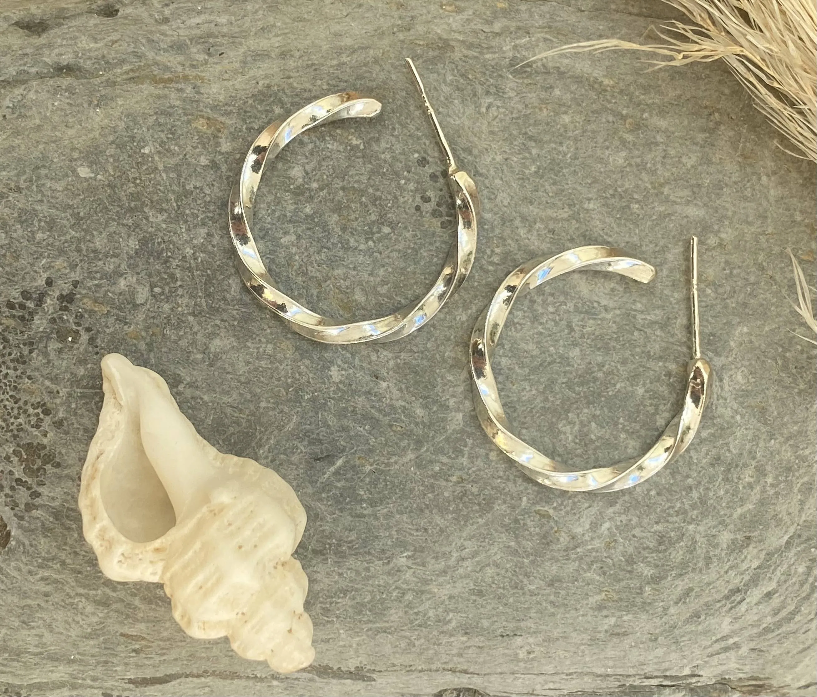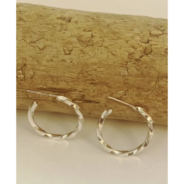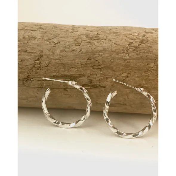 These top quality, hand crafted, hoop earrings are made from solid sterling silver and have a lovely organic twisted look.