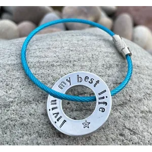 Living My Best Life - wire luggage tag -hand metal stamped bag tag -your choice of colour wire -perfect gift for travel lover