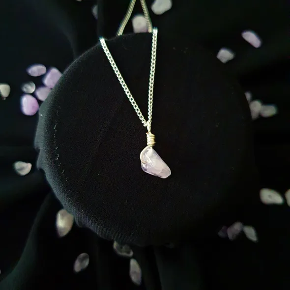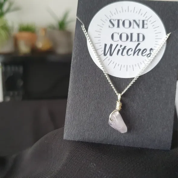 *~Hey Witches!~* Who couldn’t benefit from wearable crystal healing? If you're looking to make a spiritual connection working with your crown chakra then Amethyst is the perfect place to start~The Crystal ~Amethyst is an essential crystal for your collection, this crystal is potent for strengthening magic and psychic connections with its ability to open the crown chakra. It has healing properties, capable of relieving stress, curing nightmares and insomnia and cleansing negative influences such as addictions. Amethyst also promotes creativity and has protective properties - creating a space of protective light around the userThis beauty is perfect for... * Transformation* Protection* Sleep Aid* Addiction Release~The Necklace~This piece is handmade using silver plated chain with a lobster clasp and silver look tarnish resist wire to delicately bind the crystal into a pendant to hang from the chain. The necklace is approx 38cm but if you would like a bit of a variation on this length just drop me a message as all are handmade to order so adjustments can be made for you ~Please do note ~ all items are handmade upon order and as such the crystals used can all differ in size, shape and slightly in colourIf you have any questions, just drop a message! Lots of loveStone Cold Witches x