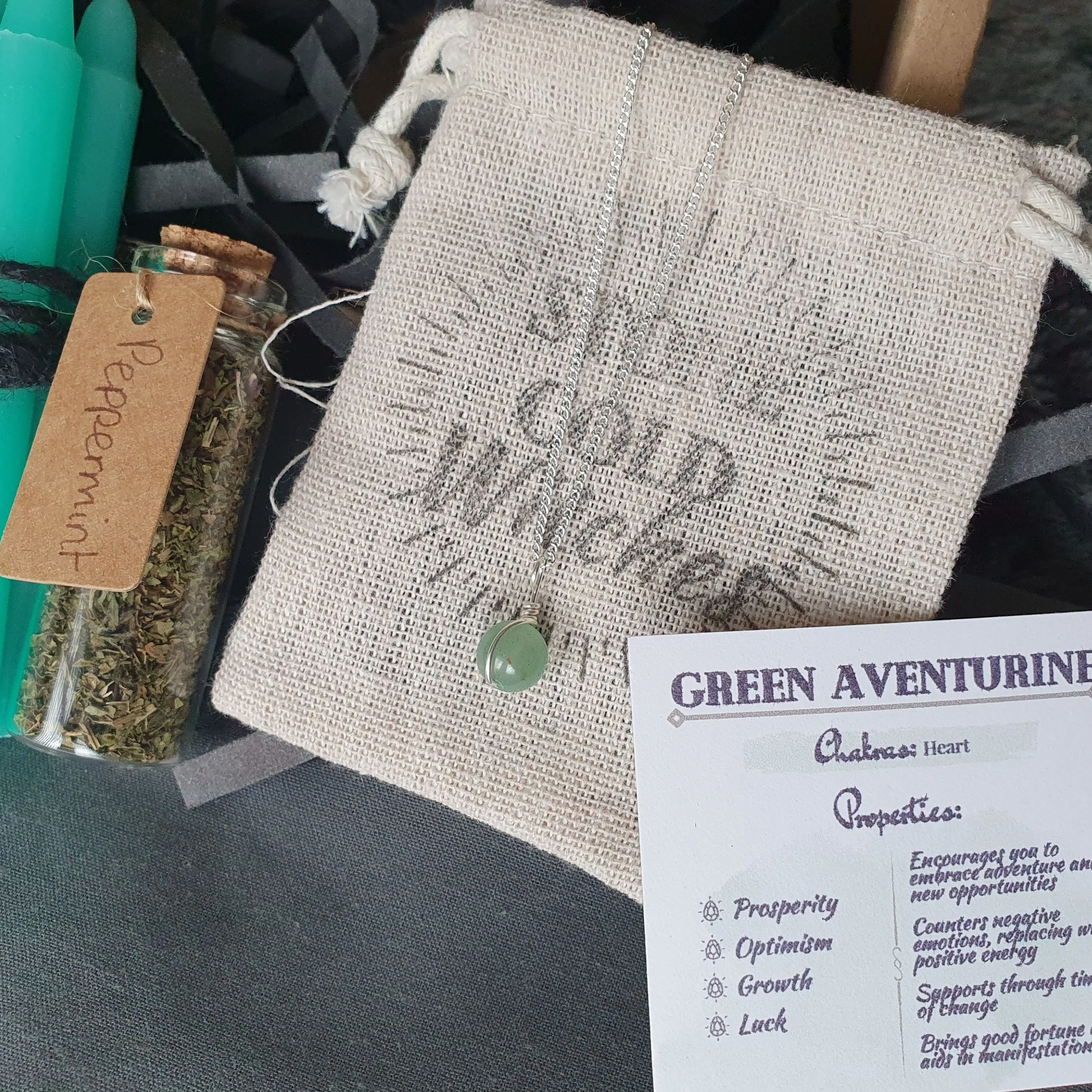 - a handmade green aventurine crystal necklace