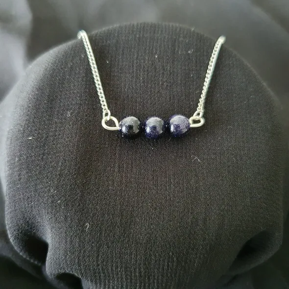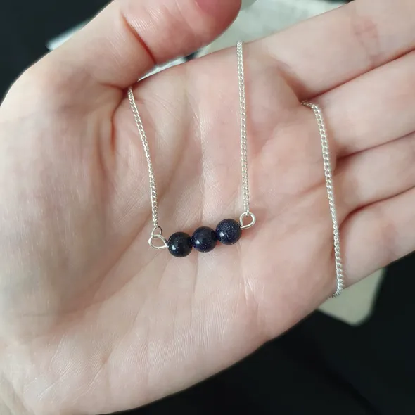 Blue Goldstone Triple Crystal Necklace - Crystal Healing Jewellery for Ambition & Courage