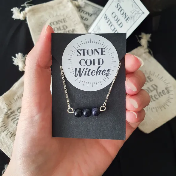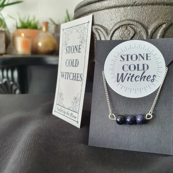 *~Hey Witches!~* Who couldn’t benefit from wearable crystal healing? Looking to advance in your career? achieve personal or business success and just generally make the world your own? Well...~The Crystal ~Blue goldstone is the queen of ambition-sparking crystals, it will fill you with the determination and focus to reach your goals, and it will do it while promoting you to express, and love, your true self. Blue goldstone is a beauty for self reflection and a wonderful healing enhancer - truly rounding you, putting you in the perfect place to achieve your goals.This beauty is perfect for...*Ambition*Enhanced Healing*Self-belief*Courage~The Necklace~This piece is handmade using silver plated chain with a lobster clasp and silver look tarnish resistant wire to delicately gather the crystals into a pendant to hang from the chain. The necklace is approx 44cm but if you would like a bit of a variation on this length just drop me a message as all are handmade to order so adjustments can be made for you ~Please do note ~ all items are handmade upon order and as such the crystals used can all differ in size, shape and slightly in colourIf you have any questions, just drop a message! Lots of loveStone Cold Witches x