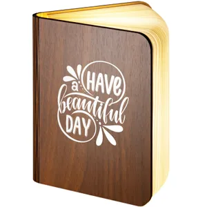 Have a Beautiful Day Design Personalised Wooden Folding Magnetic Glowing LED Book Lamp