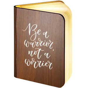 Be a Warrior Not a Worrier design Personalised Wooden Folding Magnetic Glowing LED Book Lamp