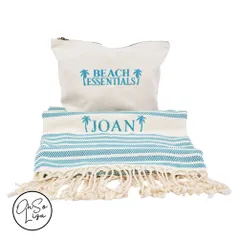 Personalised Beach Towel and Cosmetic Bag – Honeymoon Gift – Beach Wedding - Personalized Beach Towel - Custom Turkish Towel