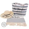Personalised Beach Towel and Floppy Hat Set, Small Beach Essentials Bag, Honeymoon Gift, Personalized Beach Set, Personalize Beach Tote