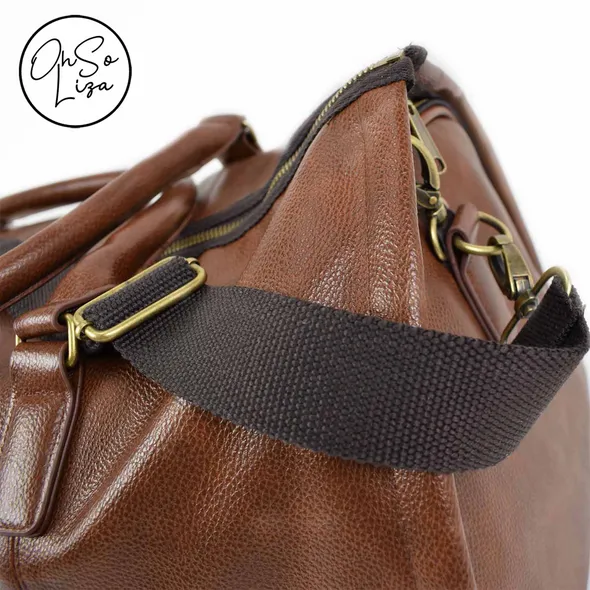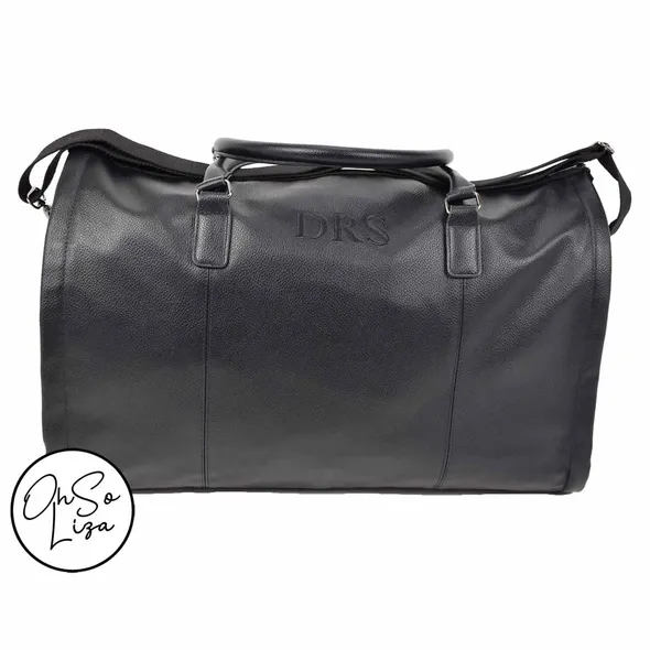 Welcome to Oh So Liza and thank you for visiting my shop. This versatile High Quality Garment Weekender Bag is very practical with that classic vintage look.  Personalised with professional embroidered monogram on the front. It is made from 100% Vegan look a like Full Grain Leather but the quality of a Leather Bag.  It comes fully lined in pinstriped fabric giving it that executive look!  Detachable/adjustable fabric shoulder strap, Self-Fabric handles which can be be carried by hand or over the shoulder. Full body garment bag section and internal shoe pocket.  With an extra long main compartment zip for easy access, secure interlocking zip closures, external zip stash pocket with gunmetal fittings, packs down flat for with perfect ease for storage when not travelling.  Designed to hang straight or fold in half when being used to carry suits, coats, uniforms or a combination of items without crushing or wrinkling them. Great for carrying apparel to sporting events or destination weddings for guys and gals!