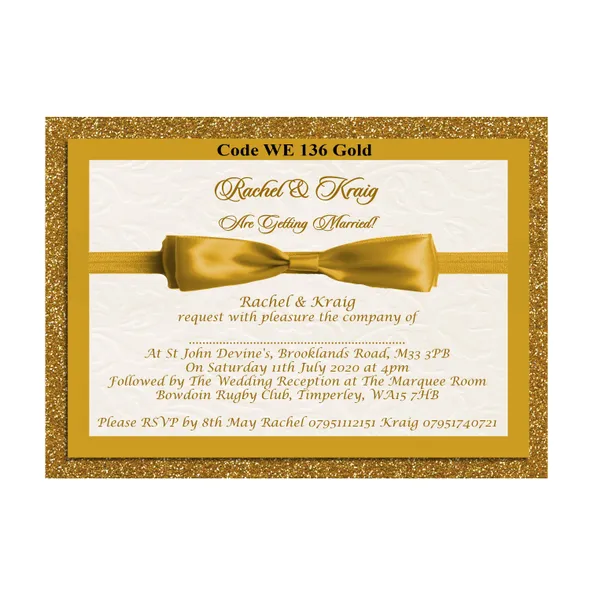 Personalised Wedding Ceremony or Evening Reception Invitations Size A6 148mm x 105mmPrinted full colour on 300gsm card printed Single Sided or Double SidedAll Wedding Day Stationery you require for your special day. We have various Wedding Day Ceremony Invitations and Evening Reception Invitations cards to chose from. All Professional designed, also text fully personalised according to your requirements.We can change background colour, text style and if you have your own design and want something different from our samples so please let us know, we are only to happy to help you with your order.If you don't like the styles we have listed we can do a bespoke style, in fact anything about our invitations can be changed.Any questions please send a message to carole@cpprintservices.co.uk