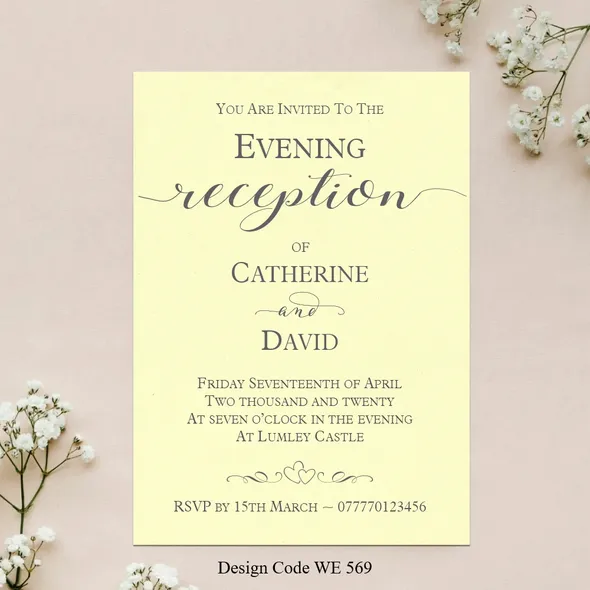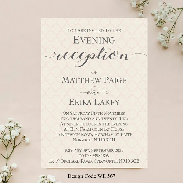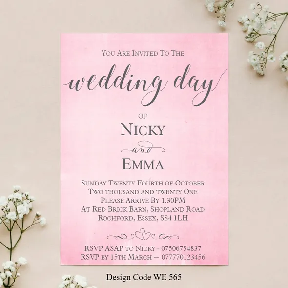 Personalised Wedding Day or Evening Reception Invitation cards.Printed full colour on 300gsm card - size 5" x 7"All Wedding Day Stationery you require for your special day. We have various Wedding Day Ceremony Invitations and Evening Reception Invitations cards to chose from. All Professional designed, also text fully personalised according to your requirements.If you don't like the styles we have listed we can do a bespoke style, in fact anything about our invitations can be changed.We are happy to discuss your requirements before you place your order, if you have any queries please email carole@cpprintservices.co.uk